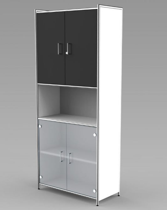 ARTLINE Kombischrank 5OH Aktenschrank Schrank Büroschrank Büroregal Weiß/Anthrazit/Glas
