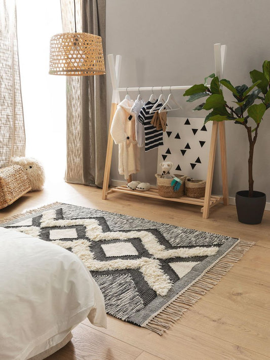 AusverkauftWollteppich Nahla Weiß / Schwarz