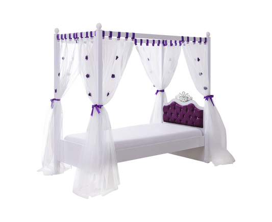 ANASTASIA LILA Himmelbett Kinderbett 90x200 cm lila / weiß