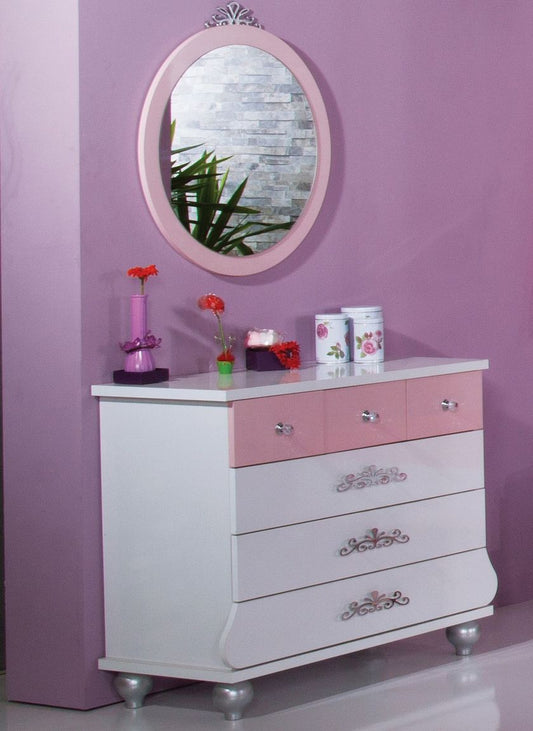 ANASTASIA PINK Kommode Kinderkommode Pink / Weiß