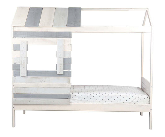Milwaukee Kinderbett, Hausform, Grau-weiß, 90x200cm Weiß / Grau