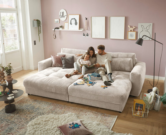 Pomezia Bigsofa 242 x 131 cm, mit Schlaffunktion und Bettkasten, Cord