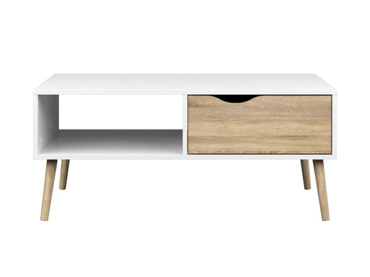 Couchtisch OSLO Wohnzimmertisch Fernsehtisch Weiß / Eiche Struktur