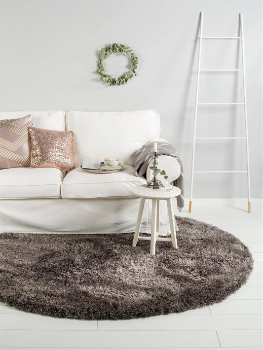 Hochflorteppich Cosy Ø 200 cm rund Hellbraun