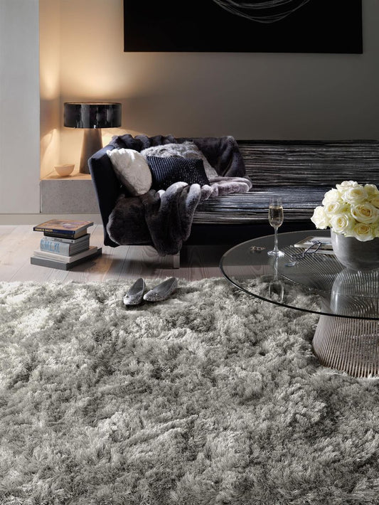 Hochflorteppich Bright Ø 150 cm rund Grau