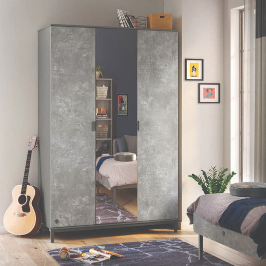 Space Gray 3-türiger Kleiderschrank mit Spiegeltür Grau