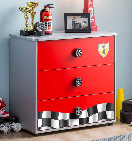 Cilek RACECUP Kommode Sideboard Anrichte Kinderkommode Rot / Grau