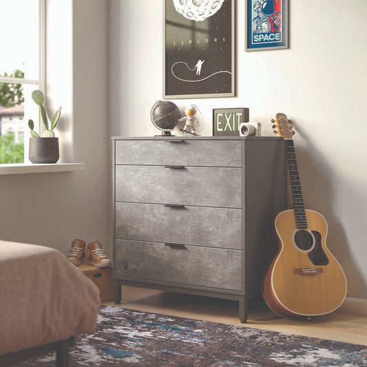 AusverkauftSpace Gray Kommode mit 4 Schubladen Grau