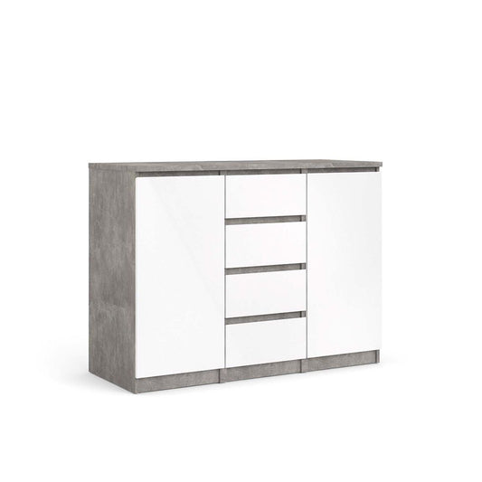 Naia Doppelkommode Beton / Weiß Hochglanz