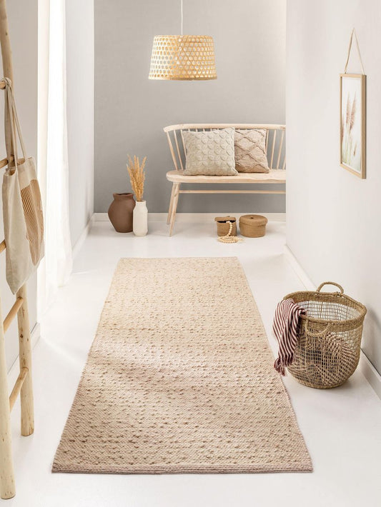Wollteppich / Läufer Jamal 80x250 cm Bunt / Beige