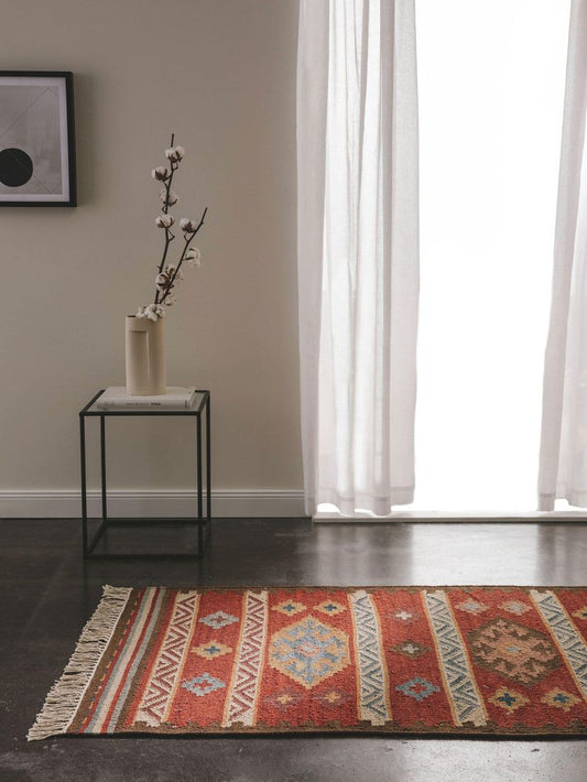 Handgewebter Kelim Teppich Läufer Zohra 80x200 cm Bunt / Rot