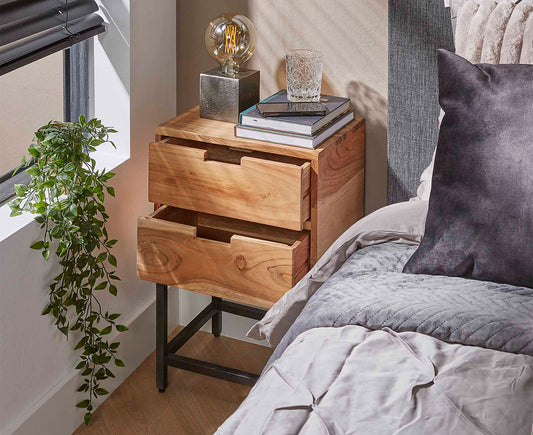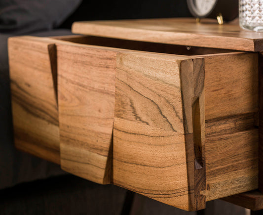 Flat Nachttisch mit 2 Schubladen Akazie Massivholz