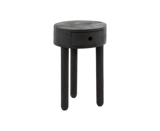 Nachttisch 1L Round Full Wood / Massiv Akazie schwarz