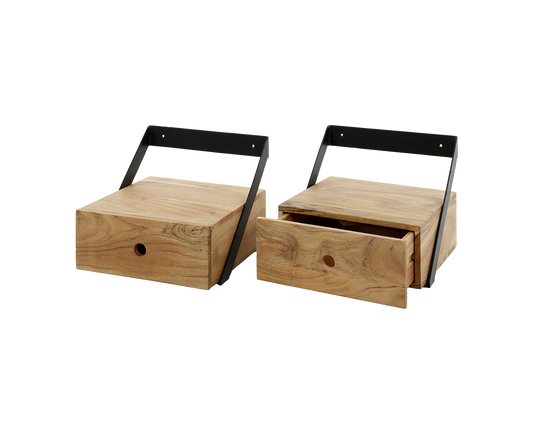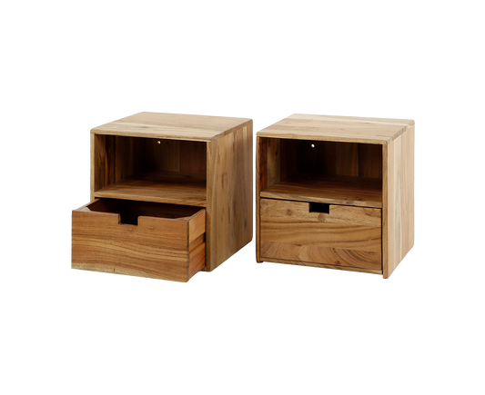 2er Set Nachttisch mit offenem Fach Akazie Massivholz