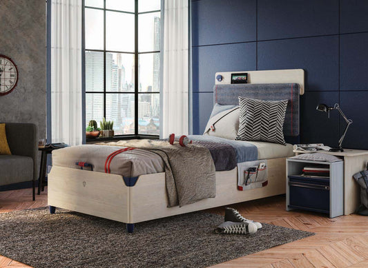 Cilek TRIO Line Bett inkl. Bettkasten 120x200cm Blau / White-Wash