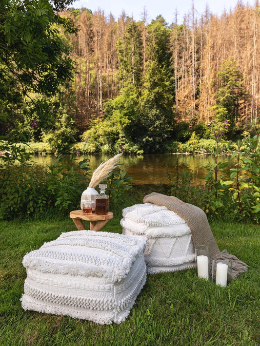 In-&-Outdoor-Pouf Toni 50x50x25 cm Elfenbein