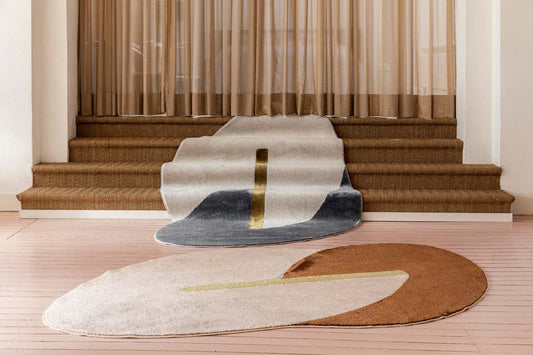 ROCKY ROUND Teppich Ø175cm Blau / Braun