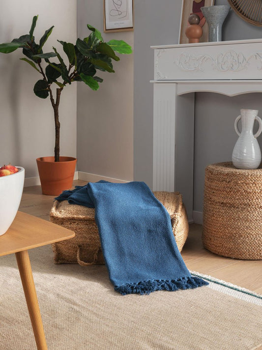 Baumwolldecke Ezra 125x150 cm Blau