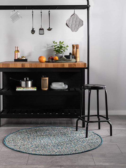 In- & Outdoor Teppich rund Cleo Weiß / Schwarz