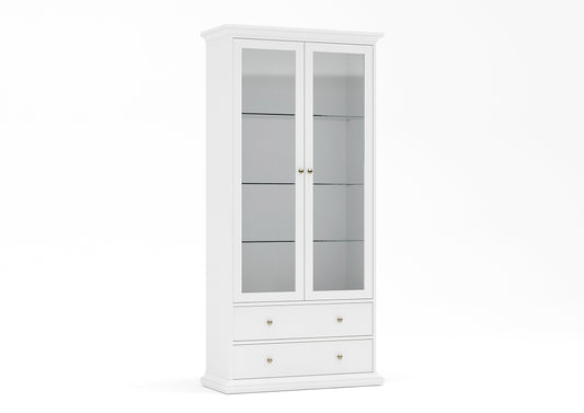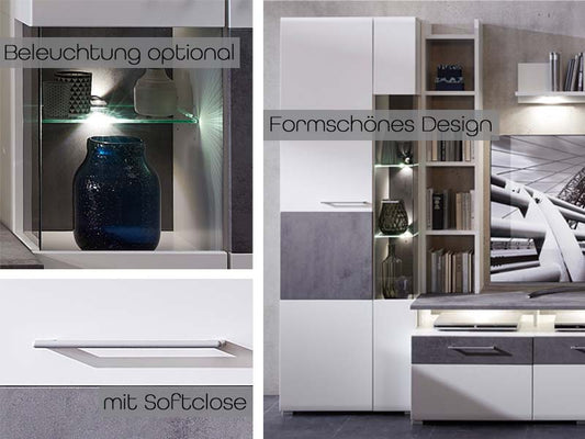 Paris Vitrine Vitrinenschrank Standvitrine Wohnzimmer Weiß / Eiche Struktur