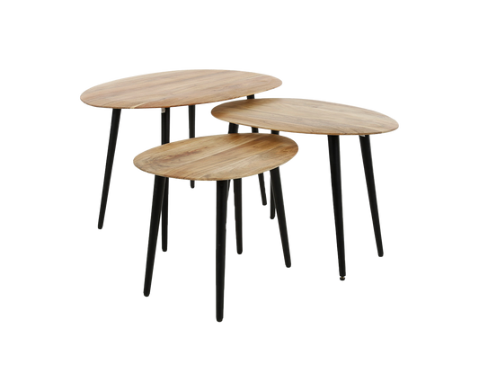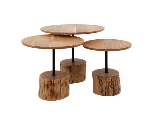 3er Set Couchtisch mit Baumstammfuß Akazie Massivholz