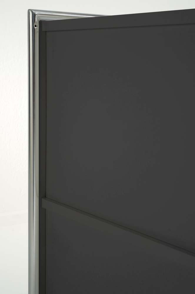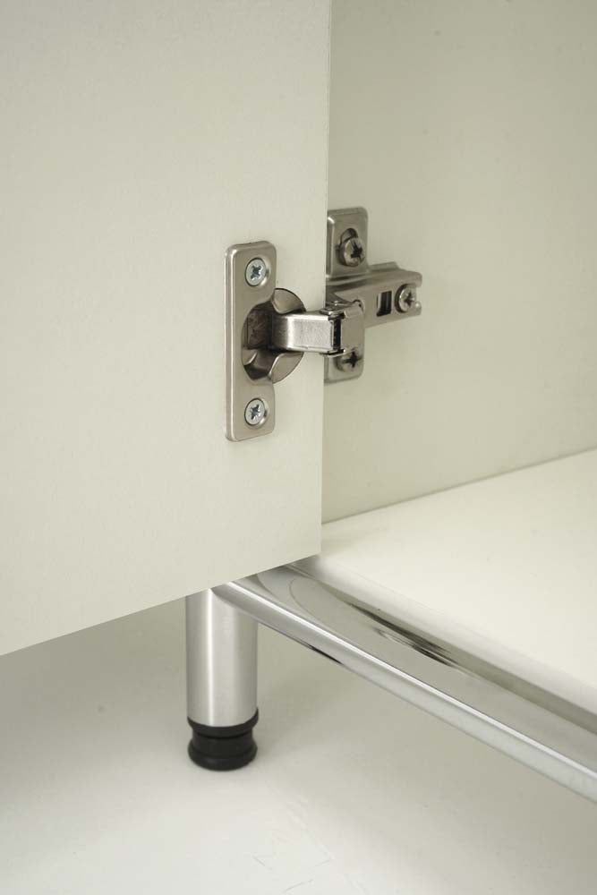 - Seitenwangen bestehend aus dreiseitig umlaufendem, verchromtem Rundrohr, 22 mm stark, mit einer Füllung aus einer 19 mm starken melaminharzbeschichteten Platte, E1-Gütespan, mit strapazierfähiger, pflegeleichter Oberfläche