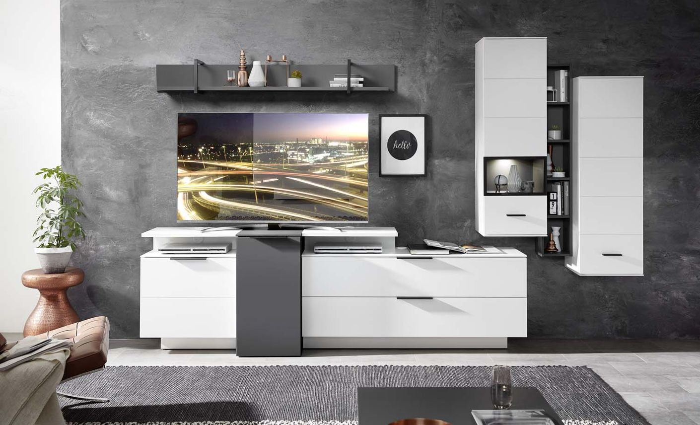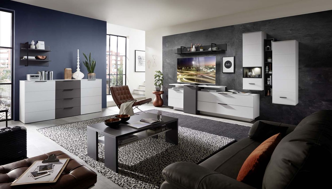 Front: graphit, Haveleiche Cognac / weiß, ABs. Artisan Eiche / weiß, graphit