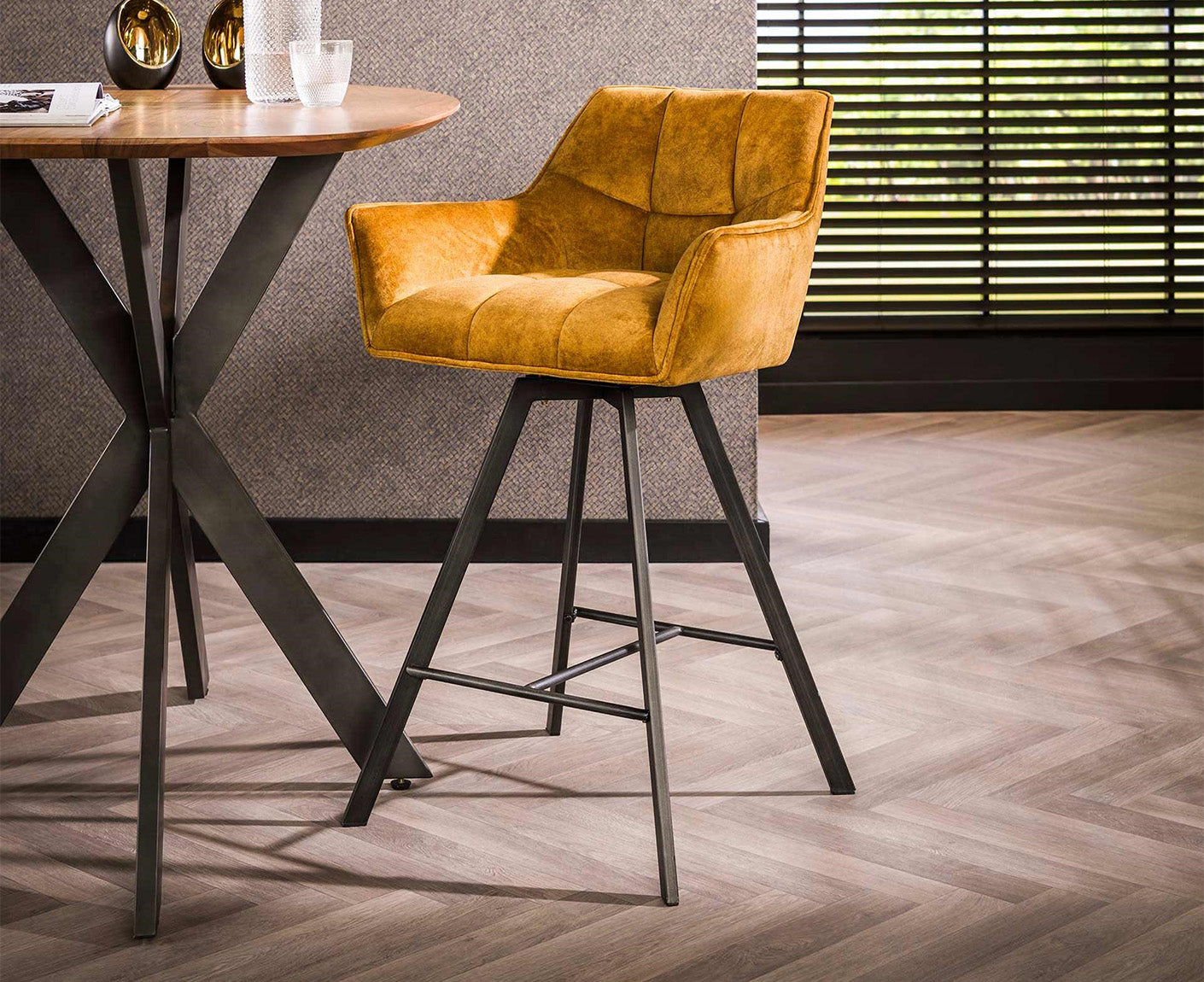 2er Set Raster Barstuhl drehbar Golden Velvet