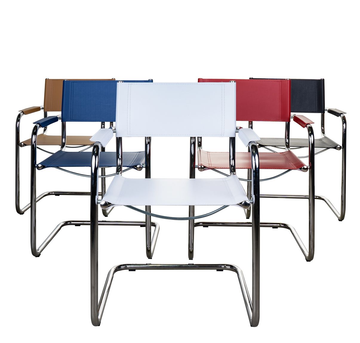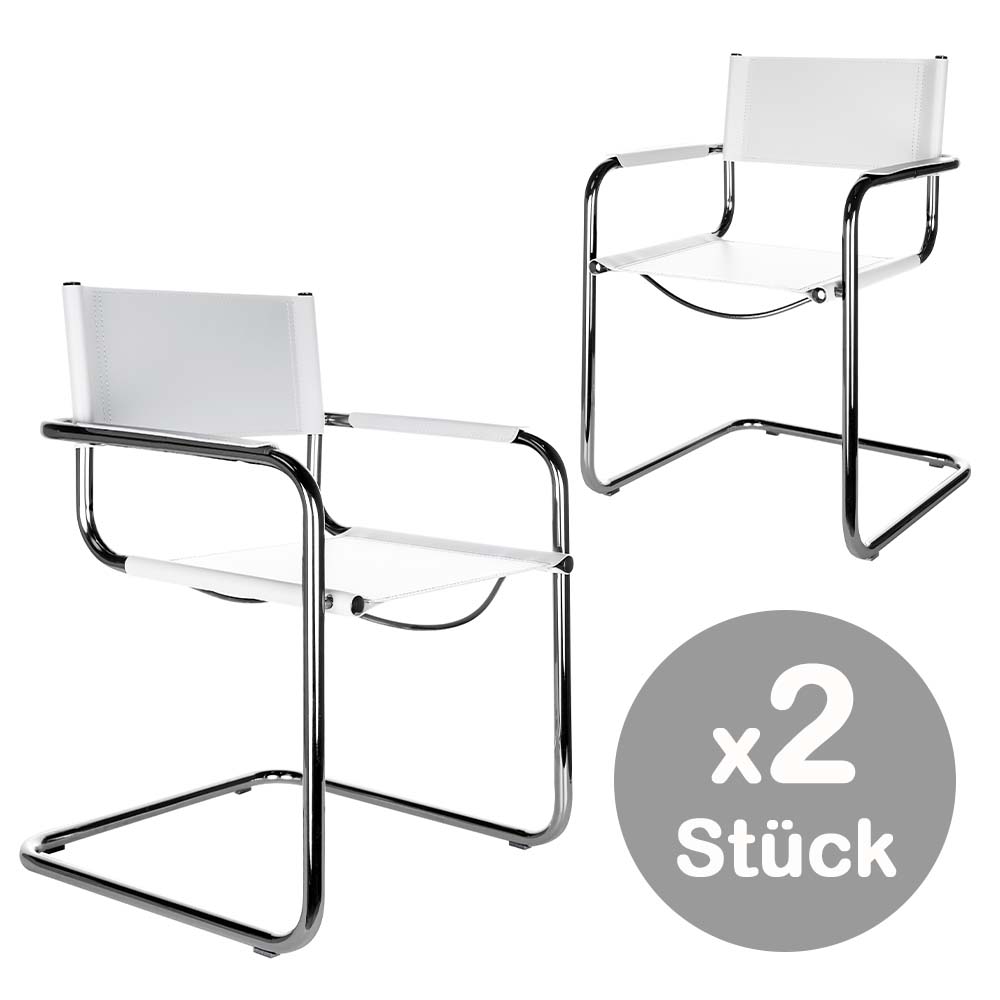 - 2x Freischwinger mit Rücken, Sitz und Armlehnen aus Leder.