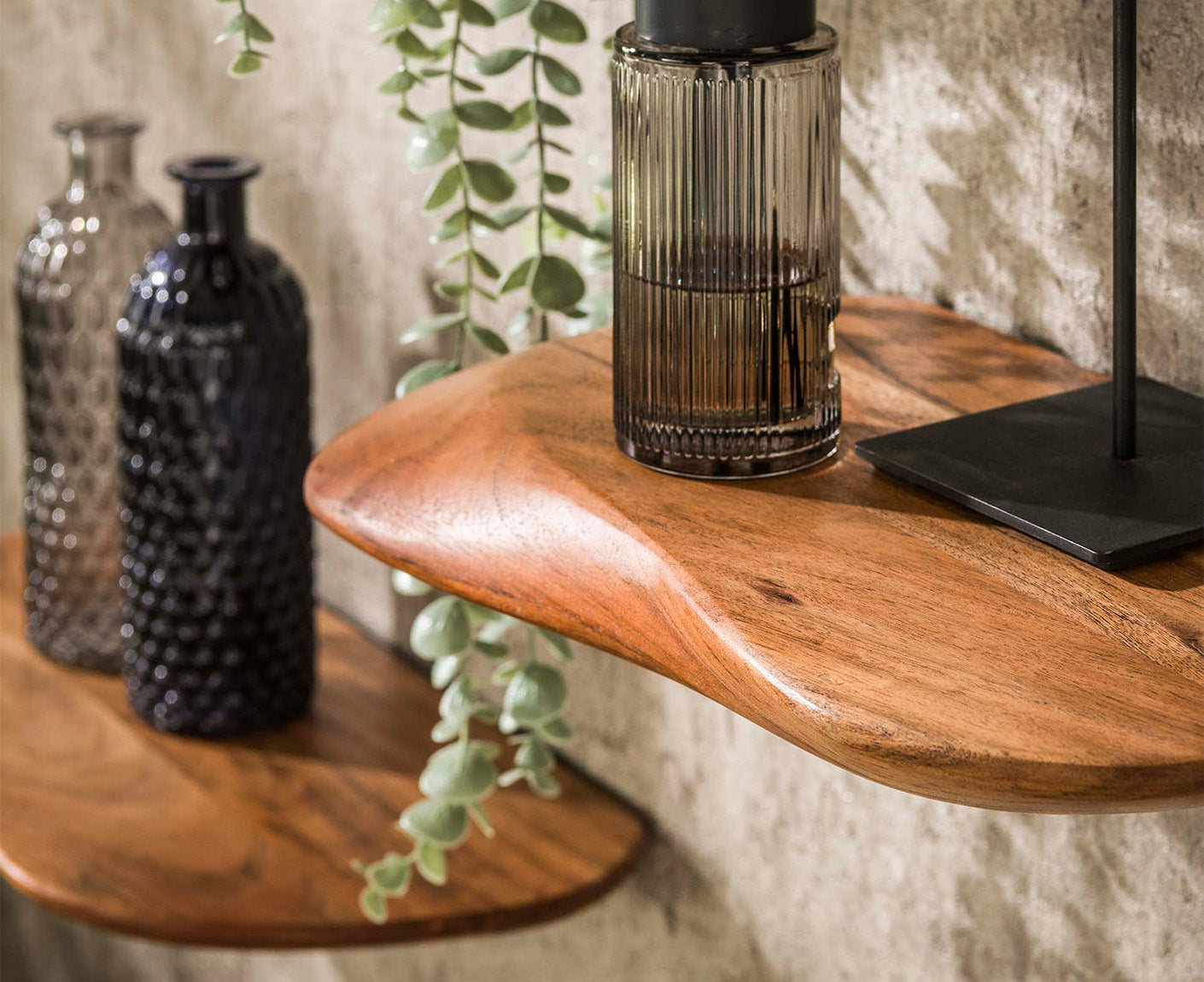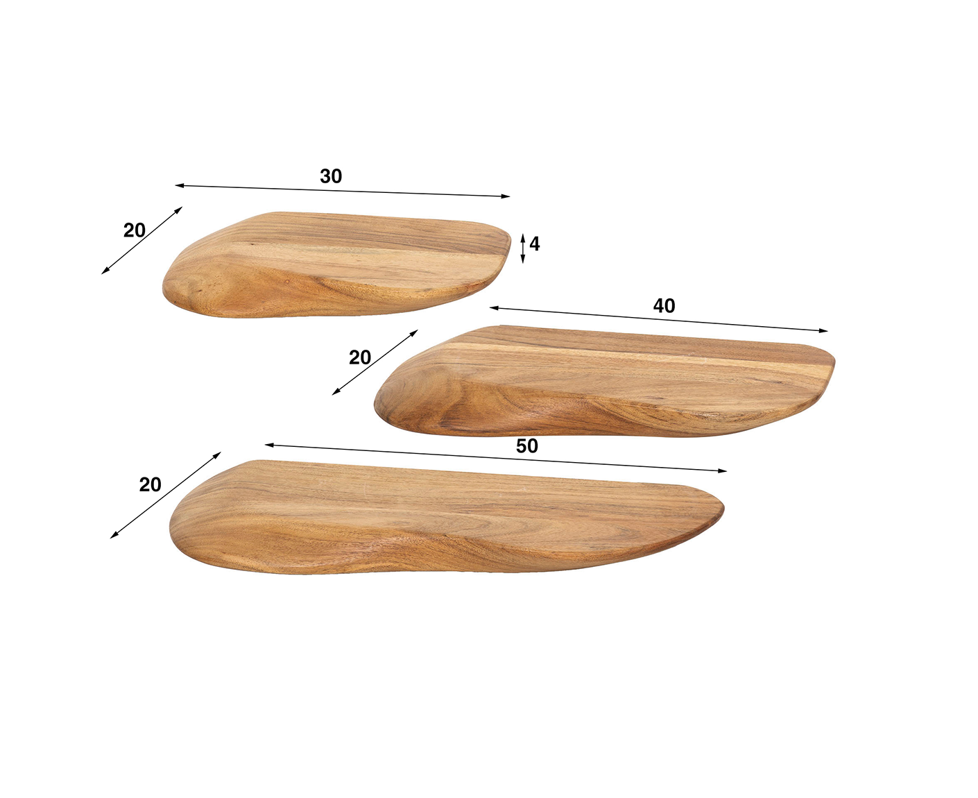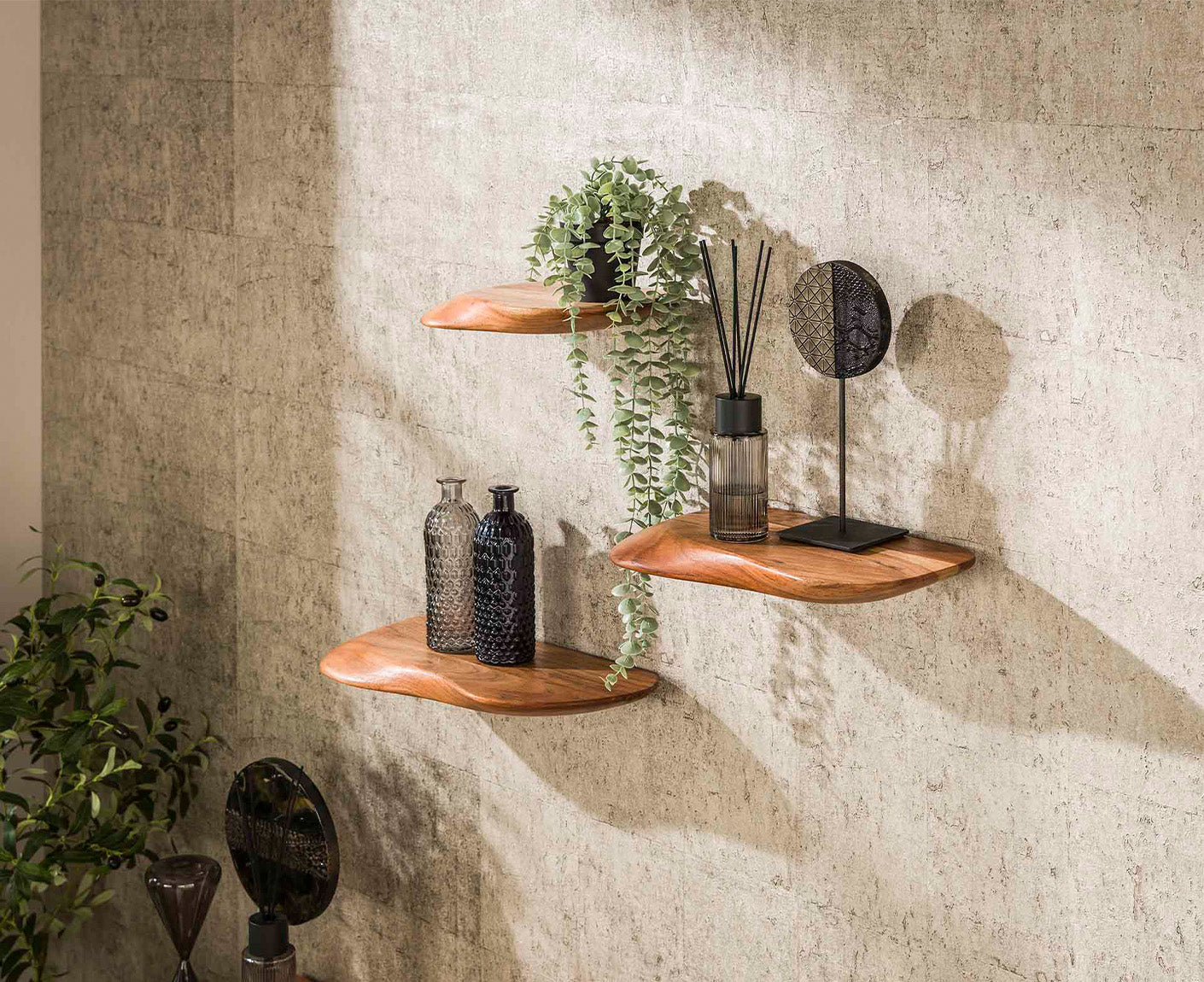 3er Set Wandregal 60 cm Breite Akazie Massivholz Natur