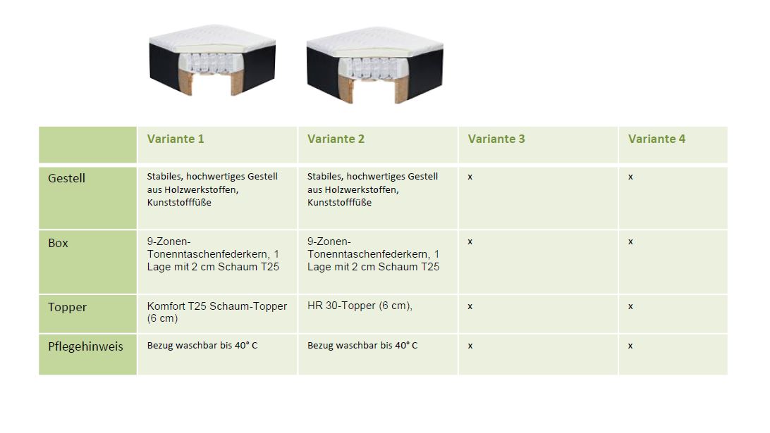 - Gestell- und Polsteraufbau: siehe Beschreibung / Variantenauswahl