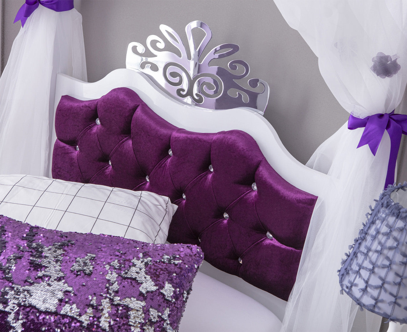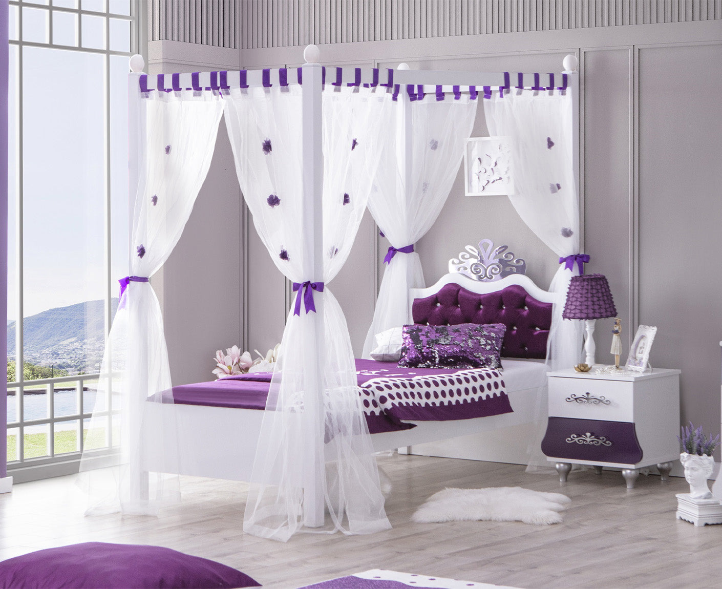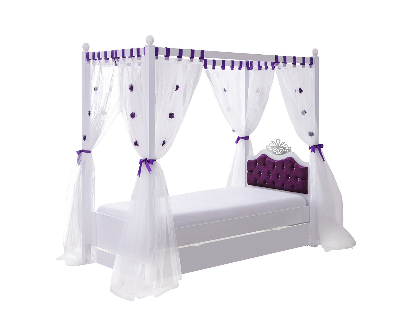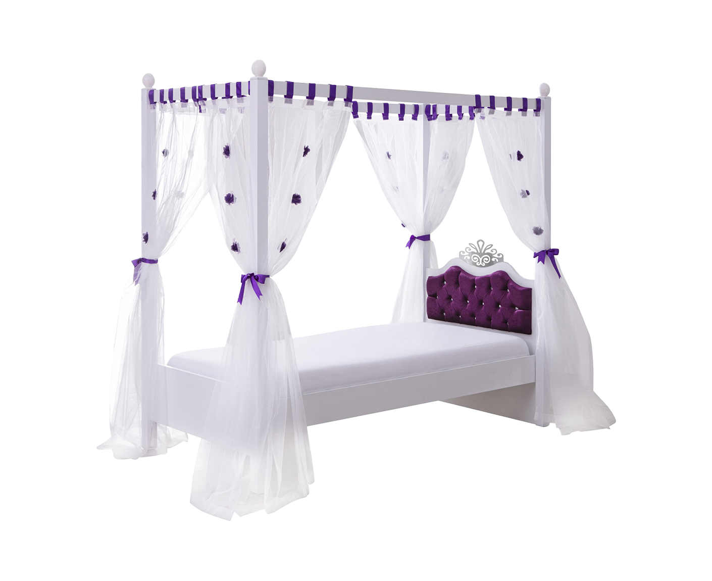 ANASTASIA LILA Himmelbett Kinderbett 90x200 cm lila / weiß
