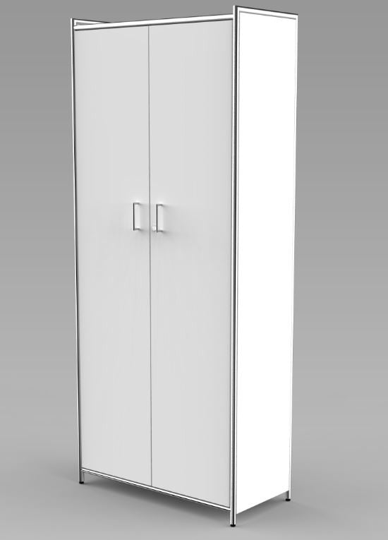 Die Regalseiten verfügen über ein dreiseitig umlaufendes verchromtes Rundrohr in 22 mm Stärke, welches mit einer 19 mm starken Holzwange aus melaminharzbeschichteter Gütespanplatte in anthrazit oder weiß gefüllt ist. Auf Wunsch können die Regalfelder mit Türen aus Holz (2 OH und 5 OH) oder Glas (2 OH) ergänzt werden, die ober- und unterhalb durch verchromte Rundrohre, 22 mm Ø, eingerahmt werden. Sämtliche Holztüren verfügen über ein Drehzylinderschloss und verchromte 105 mm lange Griffe, sowie einen Öffnungsgrad von 90 .Die Rollcontainer sind mit Stahlschubladen mit Selbsteinzug, Zentralverschluss und Auszugsperre ausgestattet.