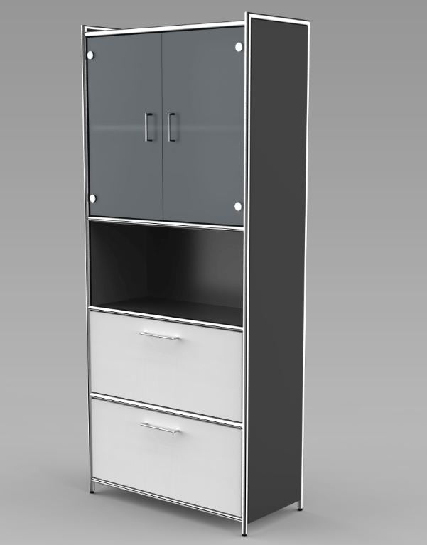 ARTLINE Kombischrank 5OH Aktenschrank Schrank Büroschrank Büroregal Anthrazit/Weiß/Glas