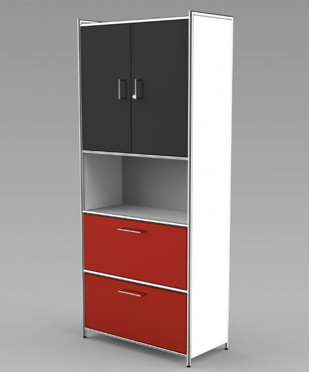 ARTLINE Kombischrank 5OH Aktenschrank Schrank Büroschrank Büroregal Weiß/Anthrazit/Rot