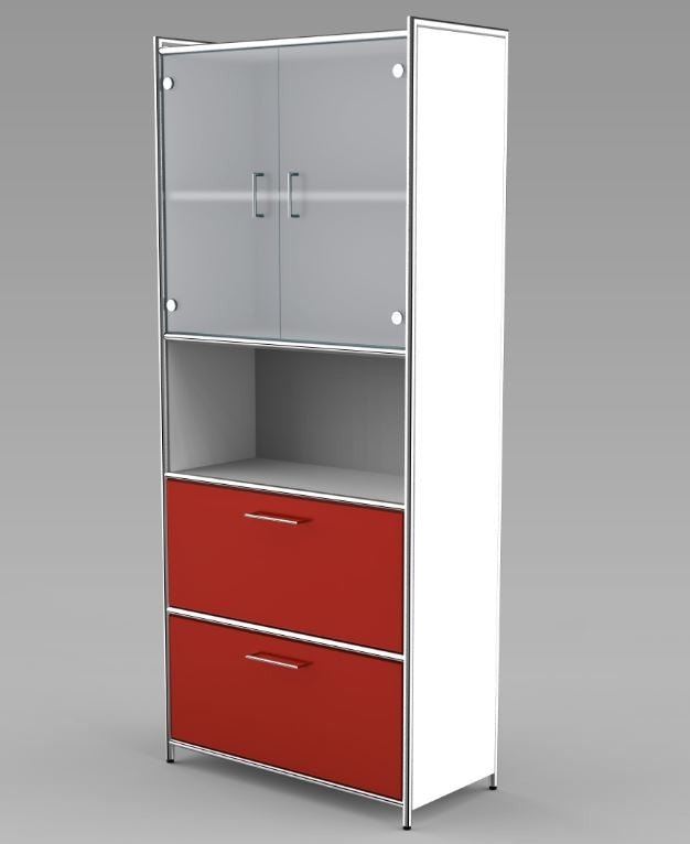 ARTLINE Kombischrank 5OH Aktenschrank Schrank Büroschrank Büroregal Weiß/Rot/Glas