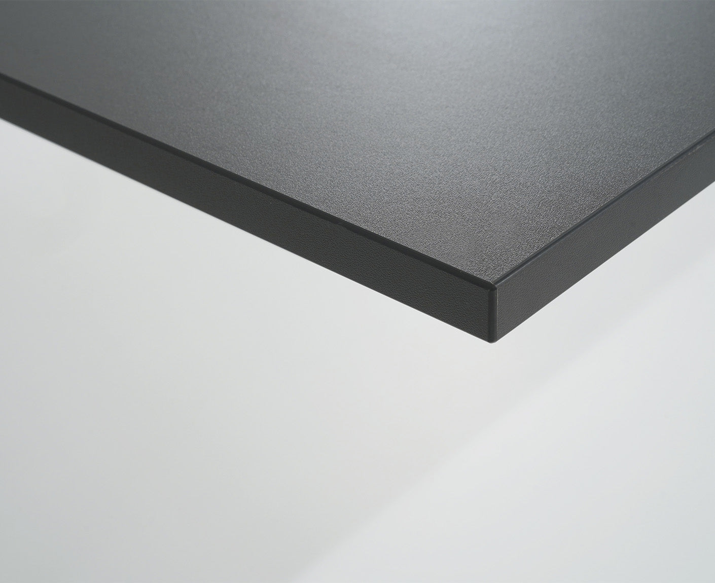 - Tischplatte: E1 Gütespan, melaminharzbeschichtet, mit ABS-Kante
