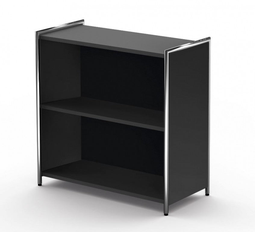 Die Regalseiten verfügen über ein dreiseitig umlaufendes verchromtes Rundrohr in 22 mm Stärke, welches mit einer 19 mm starken Holzwange aus melaminharzbeschichteter Gütespanplatte in anthrazit oder weiß gefüllt ist. Auf Wunsch können die Regalfelder mit Türen aus Holz (2 OH und 5 OH) oder Glas (2 OH) ergänzt werden, die ober- und unterhalb durch verchromte Rundrohre, 22 mm Ø, eingerahmt werden. Sämtliche Holztüren verfügen über ein Drehzylinderschloss und verchromte 105 mm lange Griffe, sowie einen Öffnungsgrad von 90 .Die Rollcontainer sind mit Stahlschubladen mit Selbsteinzug, Zentralverschluss und Auszugsperre ausgestattet.