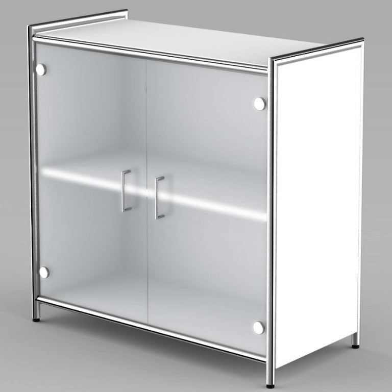 ARTLINE Sideboard 2OH Aktenschrank Schrank Büroschrank Weiß/Glas