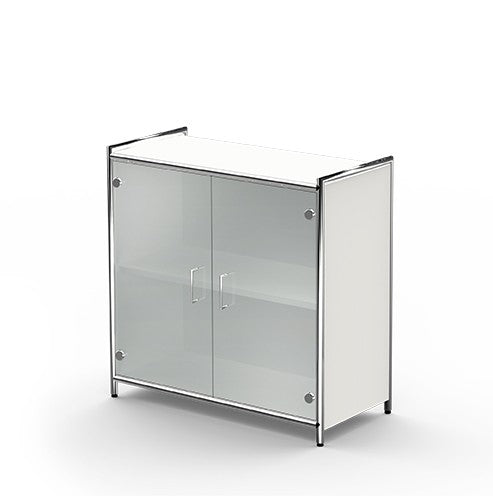 ARTLINE Sideboard Aktenschrank 2OH Büroschrank Weiß / Glas