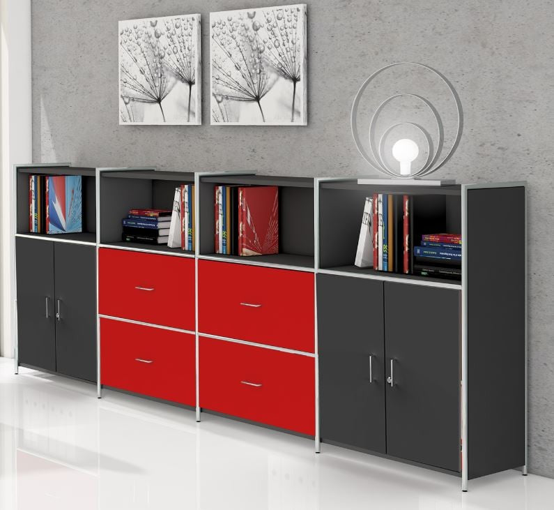 ARTLINE TYP14 Highboard 3 OH Regal Sideboard Büroregal Regalwand Anthrazit/Rot