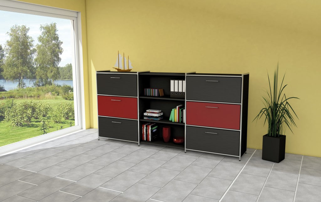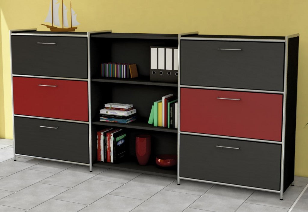 ARTLINE TYP19 Highboard 3 OH Regal Sideboard Büroregal Regalwand Anthrazit/Rot