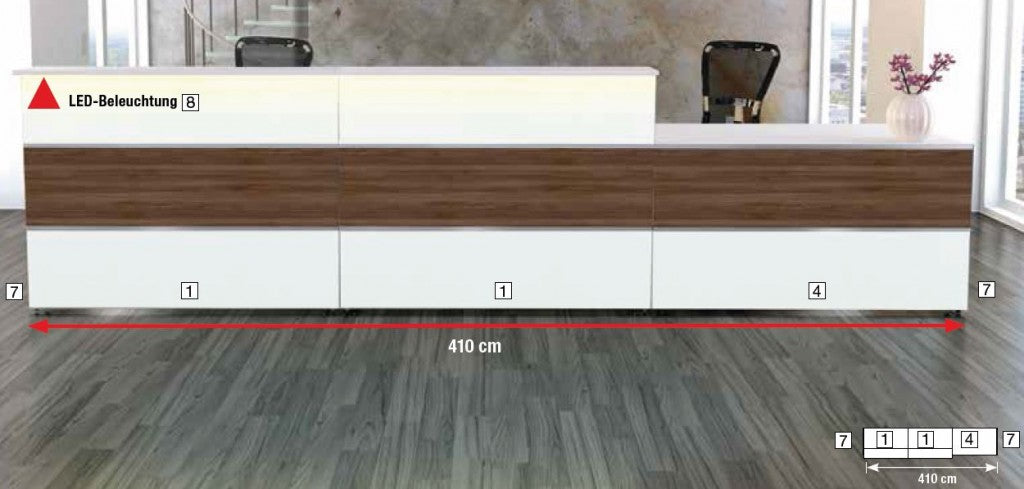 Atlantis 3 TYP3 Empfangstheke Theke Empfang Rezeption Arzttheke Lieferung Weiß Nussbaum