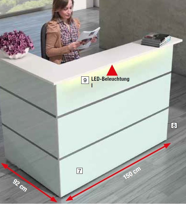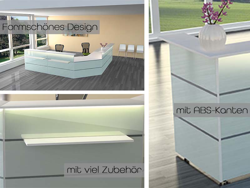 Atlantis NEW TYP1 Empfangstheke Theke Empfang Rezeption Arzttheke Lieferung Glas Weiß