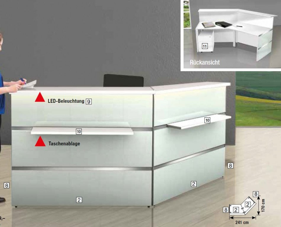 Atlantis NEW TYP4 Empfangstheke Theke Empfang Rezeption Arzttheke Glas Weiß