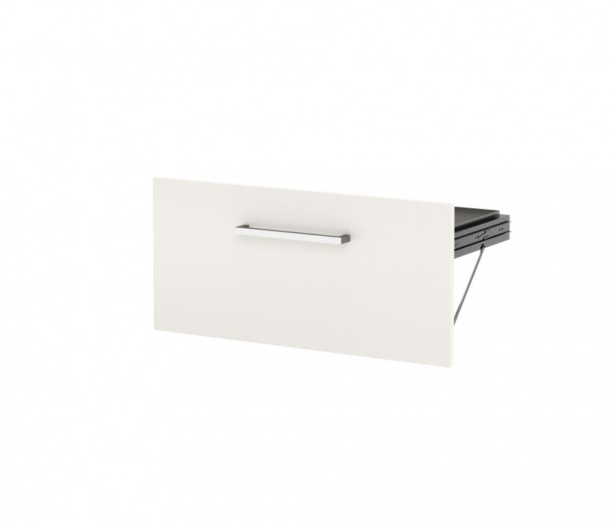 Container in Weiß haben eine Tiefe von 80 cm - für mehr Stauraum. Die obere Schublade ist mit einer verschiebbaren Materialschale für Stifte und Kleinutensilien ausgestattet. Gleichzeitig ist der Container mit Zentralverschluß, die Schubladen mit verdeckter Griffleiste, Selbsteinzug und mit einer Doppelauszugssperre versehen. Anstell-Container für Tische sind höhenverstellbar von 72-76 cm, wahlweise mit einer Oberplatte in weiß oder anthrazit. Der funktionelle Komplettarbeitsplatz beinhaltet zum Tischbereich ein Sideboard mit 2 Schiebetüren und mittig 3 Schubladen. Hinter den Türen befindet sich jeweils 2 Ordnerfächer.