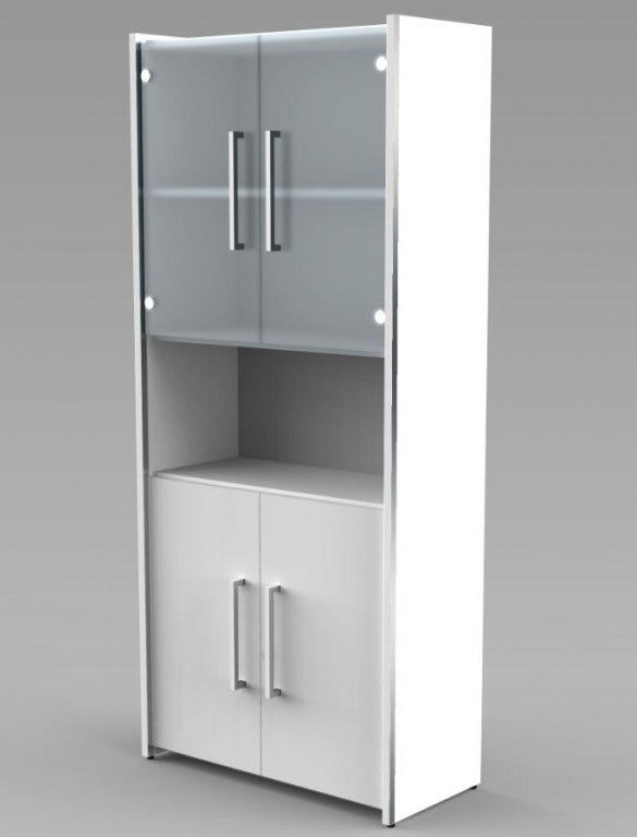 Die Regale können sowohl einzeln als auch aneinandergebaut aufgestellt werden (Ersparnis von Seitenwangen). Die Fachhöhen sind auf Ordnerhöhen abgestimmt. Der Regalkorpus ist stets in Weiß und wird zum Schrank, wenn er mit Vorbautüren versehen wird. Diese gibt es in Weiß, Wenge, Anthrazit und Glas. Die Regalwangen werden durch Edelstahlstreifen optisch aufgewertet, und passen so ideal zu den Tischgestellen. Die Türen sind mit Edelstahlgriffen versehen.