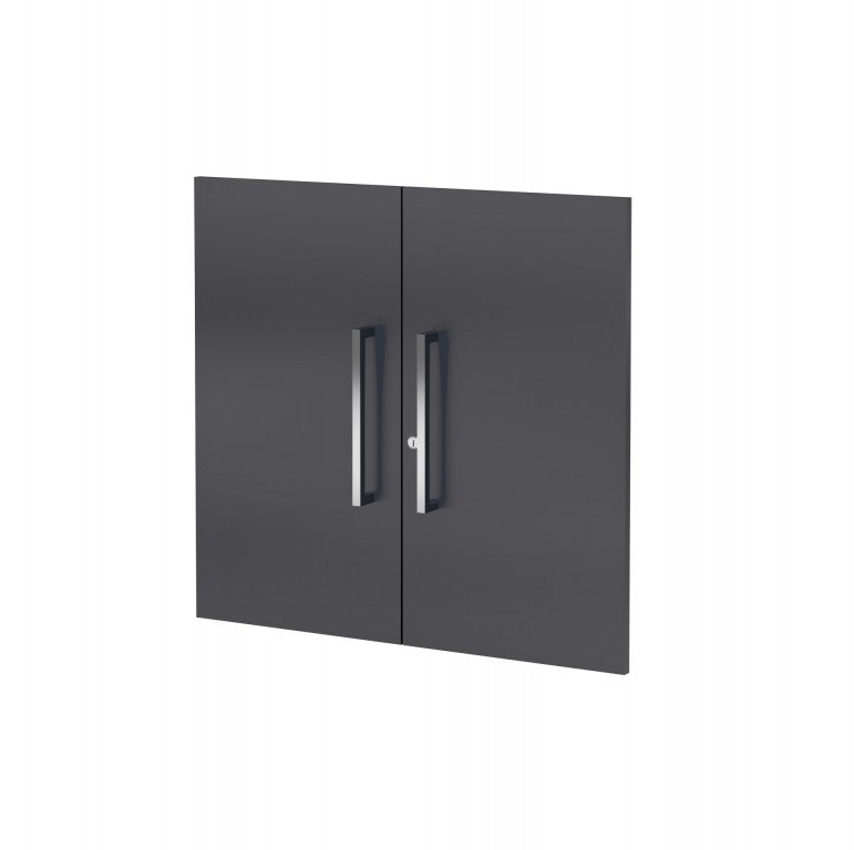Die Regale können sowohl einzeln als auch aneinandergebaut aufgestellt werden (Ersparnis von Seitenwangen). Die Fachhöhen sind auf Ordnerhöhen abgestimmt. Der Regalkorpus ist stets in Weiß und wird zum Schrank, wenn er mit Vorbautüren versehen wird. Diese gibt es in Weiß, Wenge, Anthrazit und Glas. Die Regalwangen werden durch Edelstahlstreifen optisch aufgewertet, und passen so ideal zu den Tischgestellen. Die Türen sind mit Edelstahlgriffen versehen.