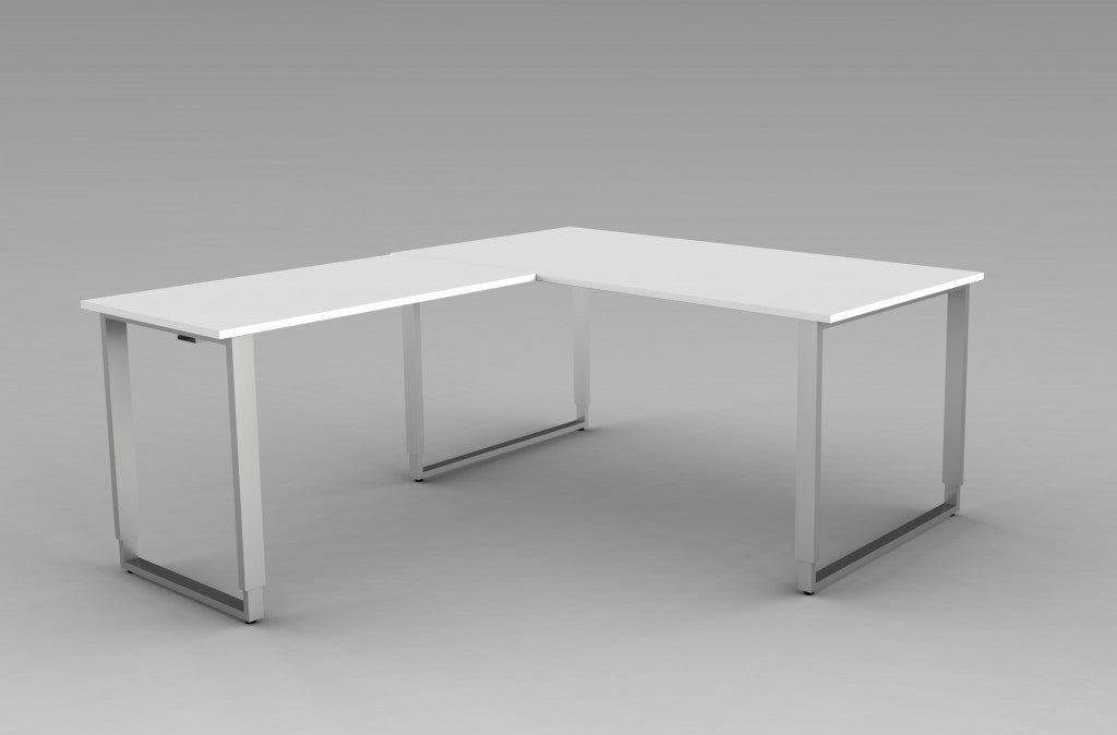 -WINKELKOMBINATION Schreibtisch und Anbautisch mit höhenverstellbaren Bügelgestell (68-82cm).