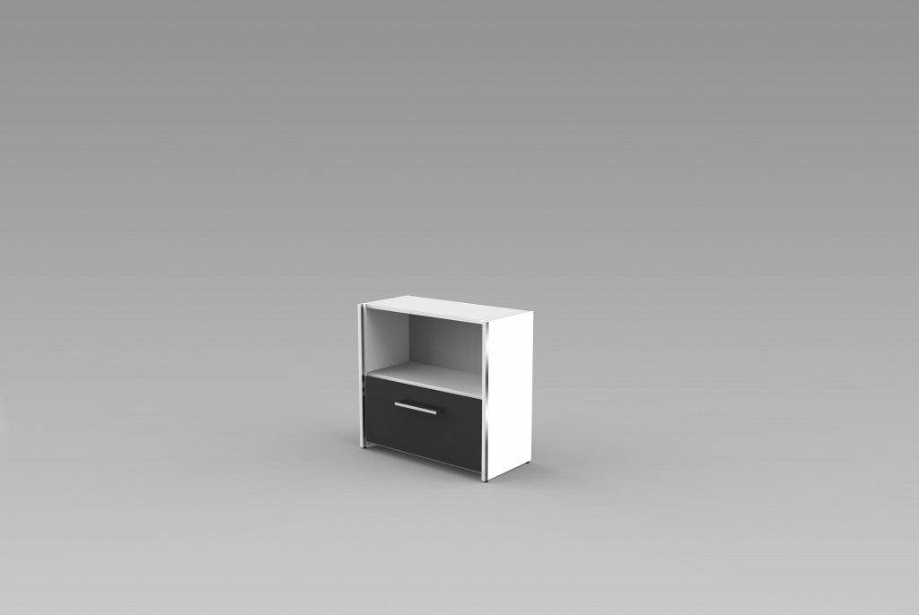 - 1 breites 2 OH Regal mit Schublade für Hängeregistratur. - Abmessungen: